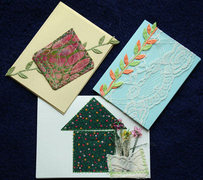 I also sew cards for every occasion, using fabric scraps, beads, buttons and anything I find that will add to the card's individual style. For me, this is all a work in progress as I explore the various dimensions of fabric and color.